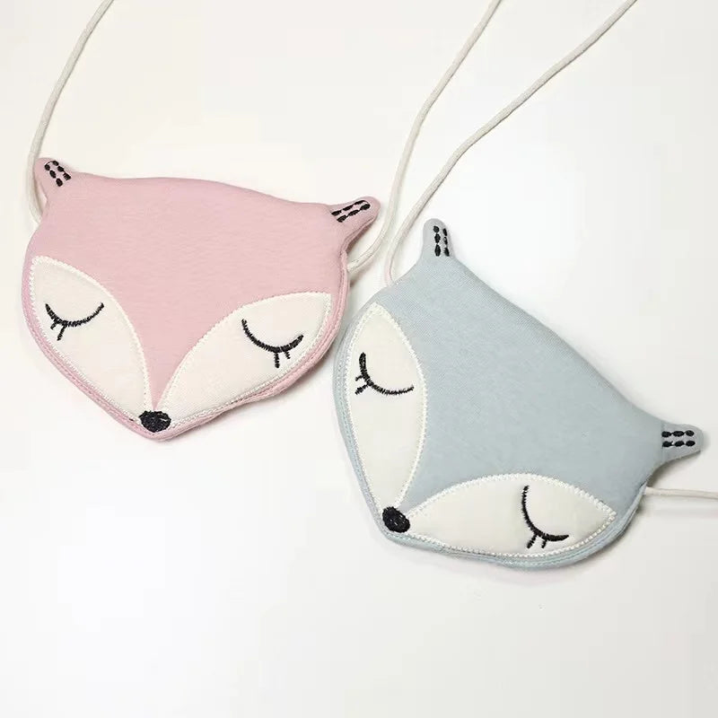 Adorable cartoon children messenger bag in pink and green fox shape design. Made of cotton with small capacity.
