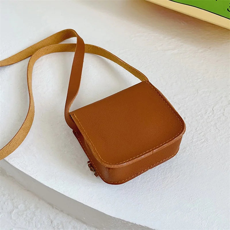 Kids Girls Mini Messenger Bag Retro PU Leather Solid Messenger Bag Kids Square B