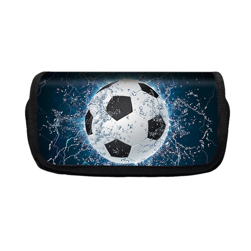 This pencil bag features a vibrant soccer/football print, perfect for boys' school supplies. Great for organizing stationery and small items.