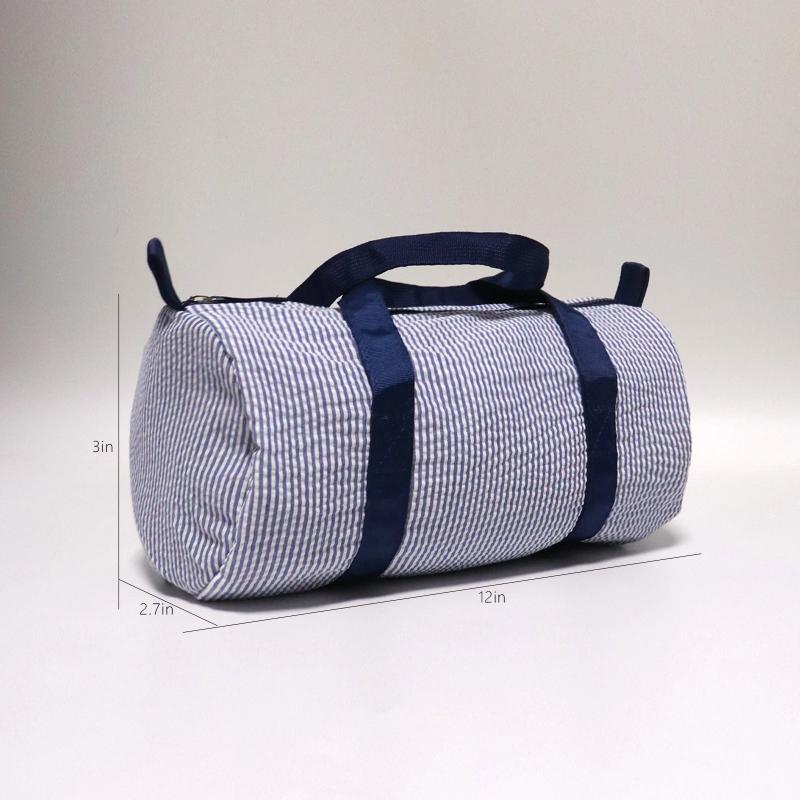 Kids Toddler Seersucker Duffle Navy/purple Striped Personalized Baby Duffle