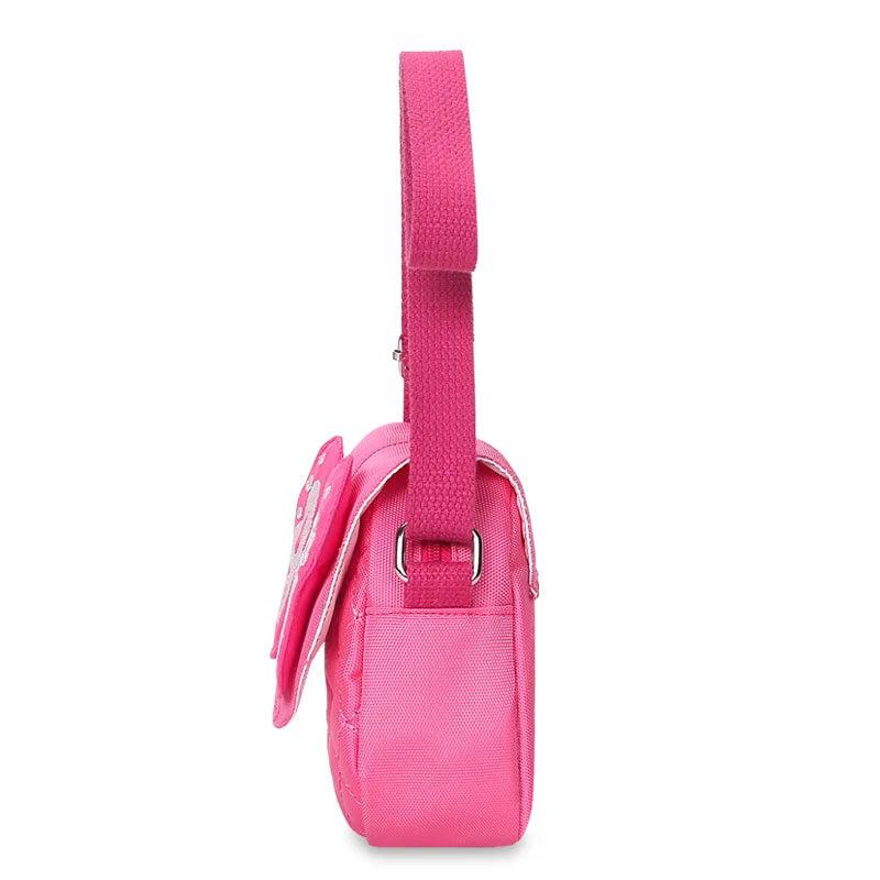 This lightweight round mini girl messenger bag features a cute cartoon butterfly design, perfect for kindergarten kids.