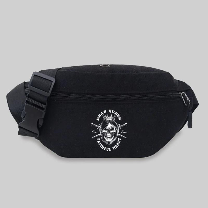This stylish bum bag features a King and Queen pattern design, perfect for couples. Made of durable canvas material, it is ideal for leisure sports and activities. Stay organized and hands-free with this convenient fanny pack.