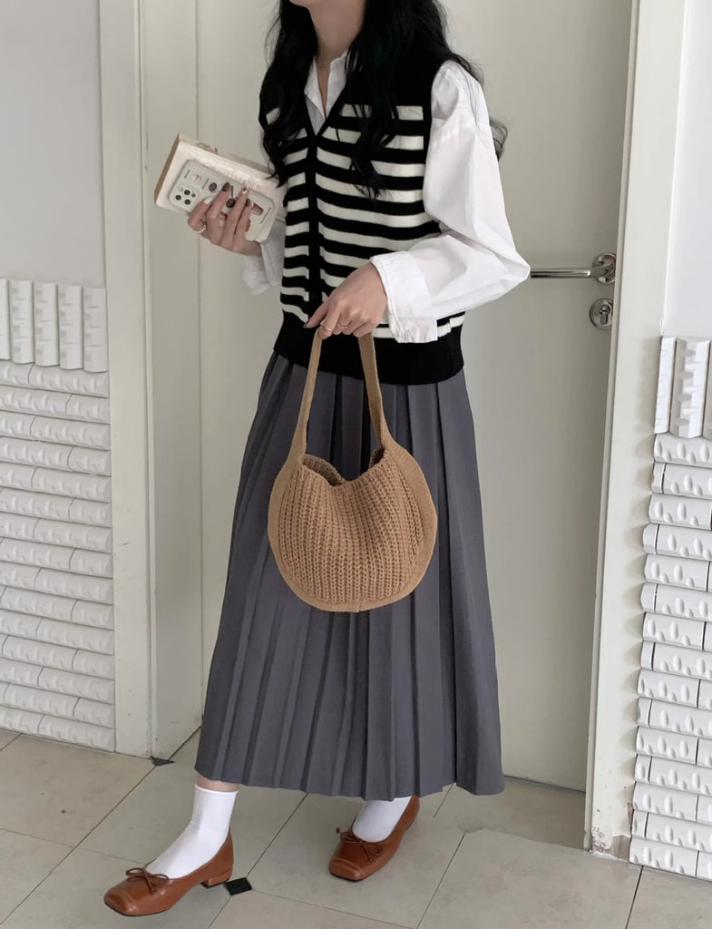 Stay stylish and warm with this autumn and winter shoulder bag made of knitting wool. Perfect for daily commuting or casual outings.