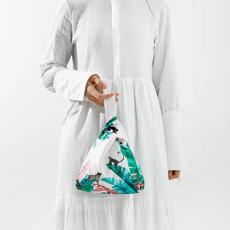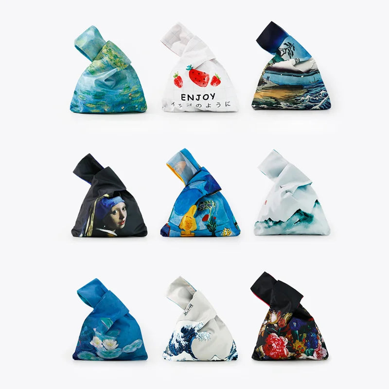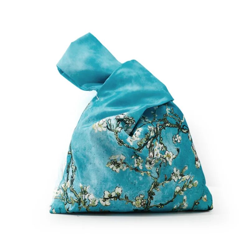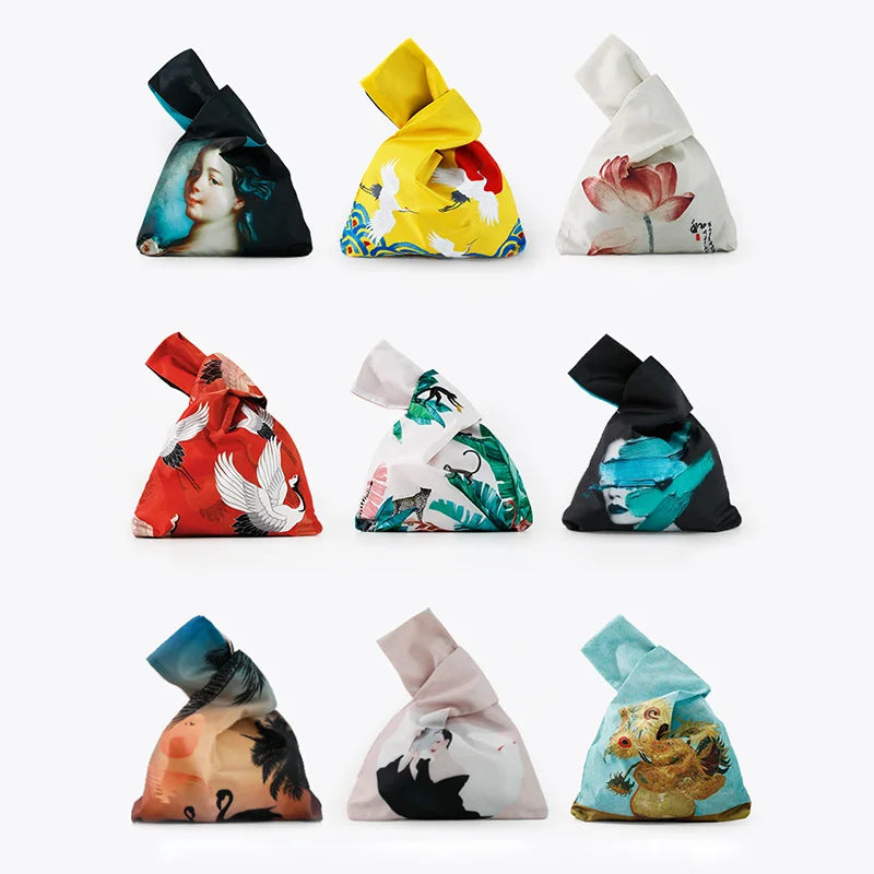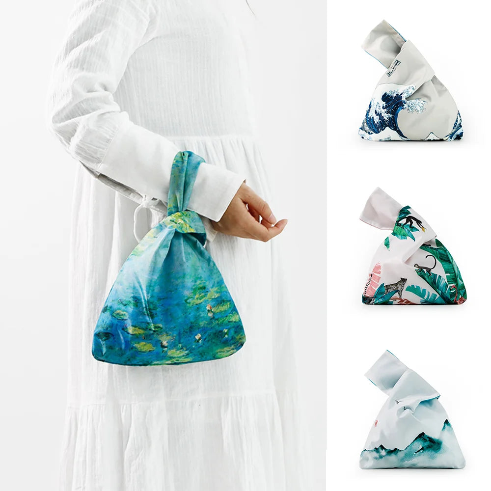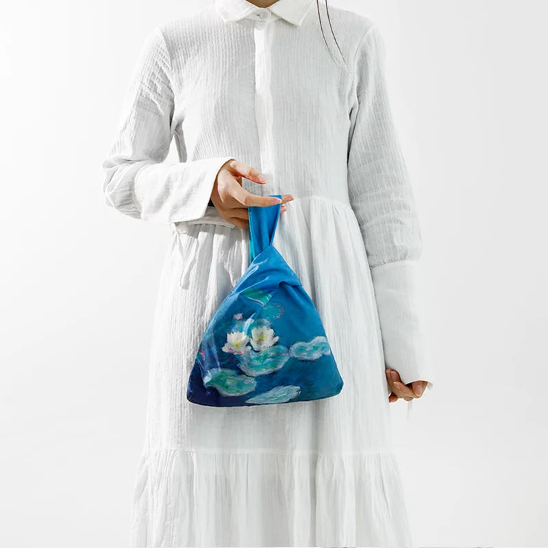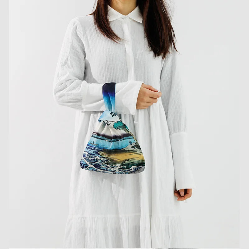 Knot Wrist Bag Japanese Style Hand Bags Lady Purse Oil Painting
