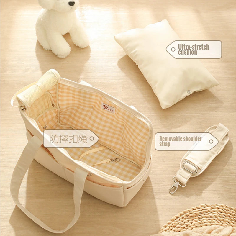 This portable pet bag is made from pure cotton, ideal for small dogs like Teddy or Pomeranian. It's perfect for travel and outdoor adventures.