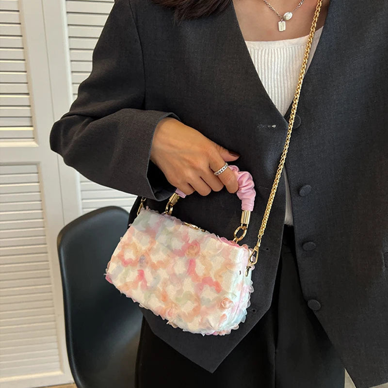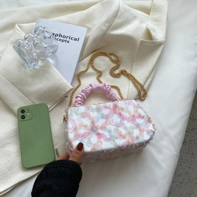This lace summer bag is perfect for girls. It features pleated design and is made of durable PU material. Ideal for travel, weddings, or other special occasions.