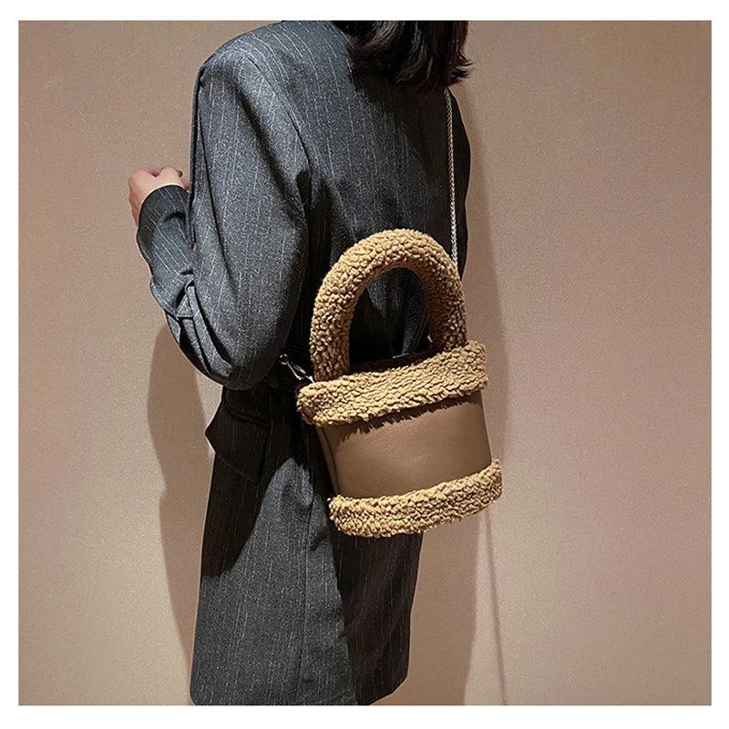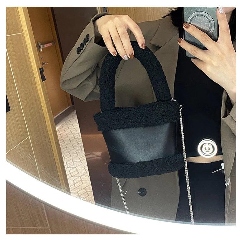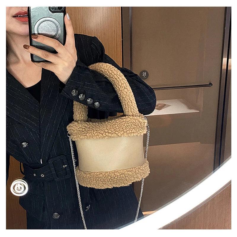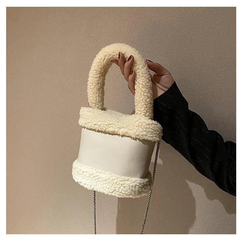 Lamb Hair Chain Crossbody Bucket Bag Female