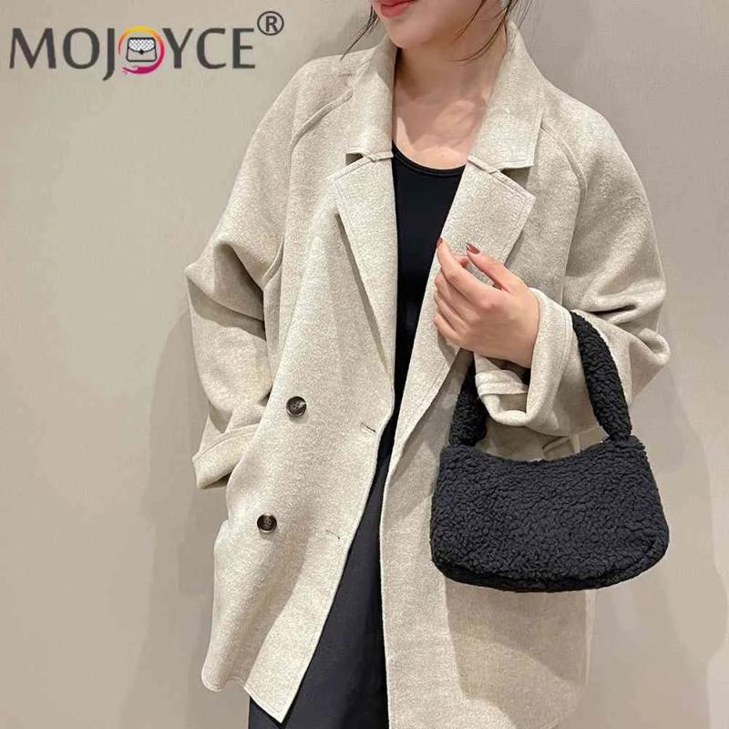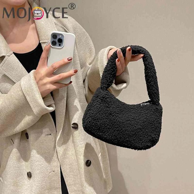 Lamb Wool Commute Bags Soft Winter Tote Casual Portable Warm Zipper Solid