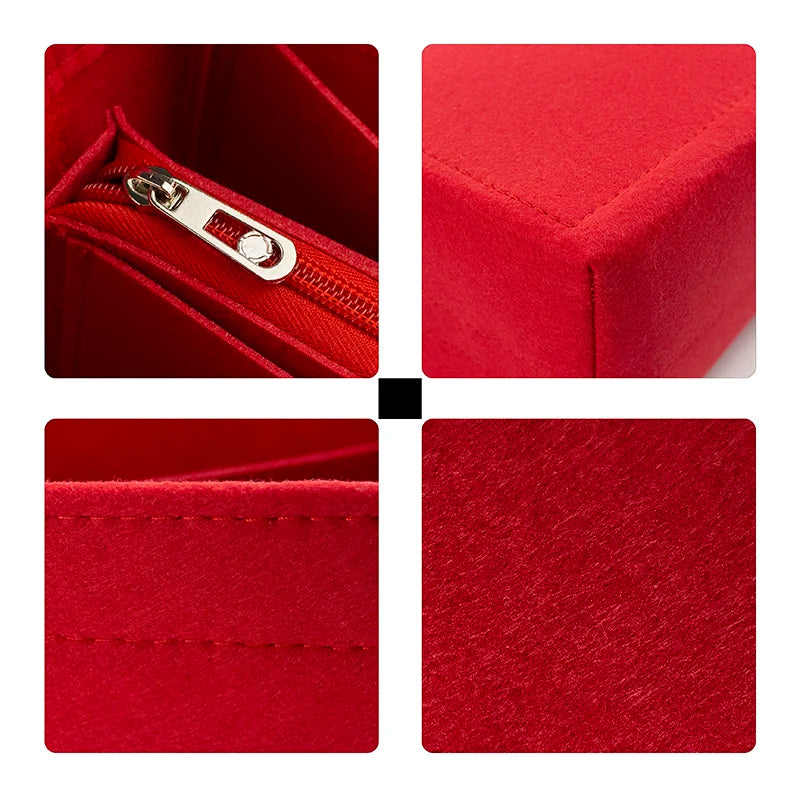 This felt organizer is designed to fit perfectly in your tote bag, offering ample space for all your cosmetic essentials while keeping everything organized. Features a secure zipper closure for added convenience.