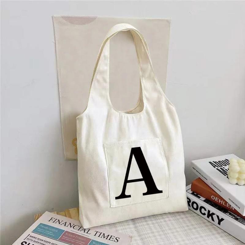 This versatile tote bag is perfect for daily use, shopping, and carrying all your essentials. It is made of durable canvas material and features a stylish letter print design.