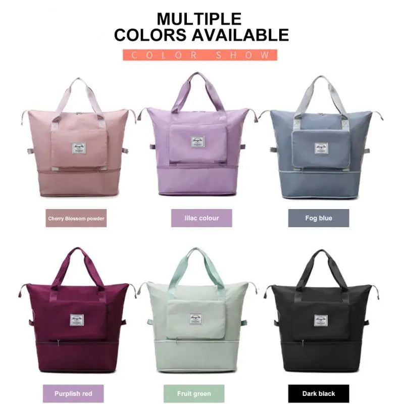 This portable and expandable bag is perfect for travel, gym, yoga, and more. It has a large capacity and is easy to fold and store when not in use.