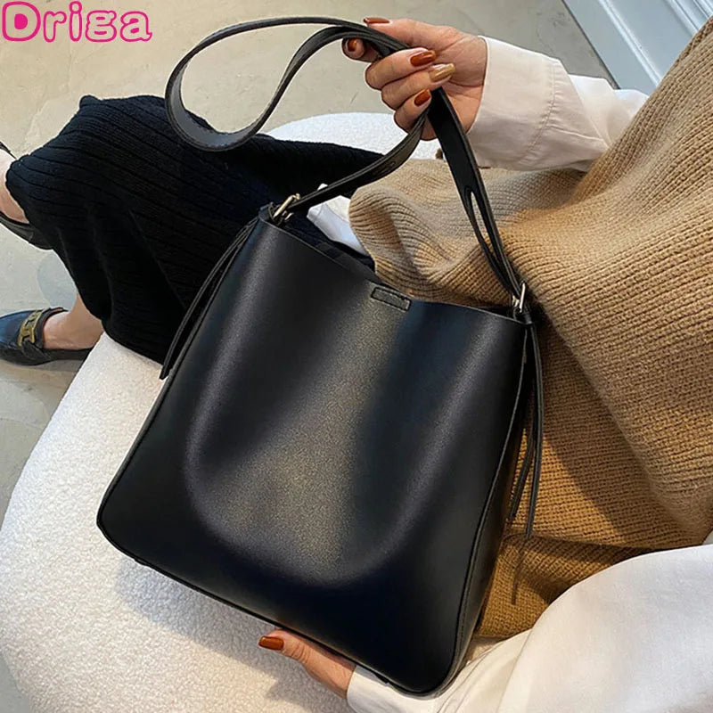 Large Capacity Shoulder Bucket Bags Female Style All-match Texture Messenger Bag
