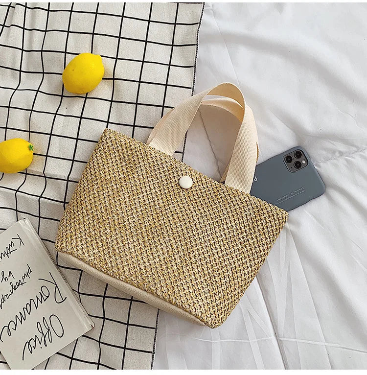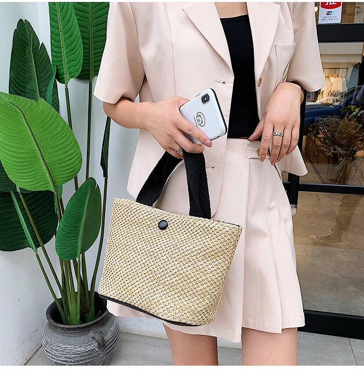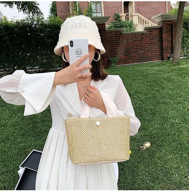- Handwoven straw bag perfect for summer vacations