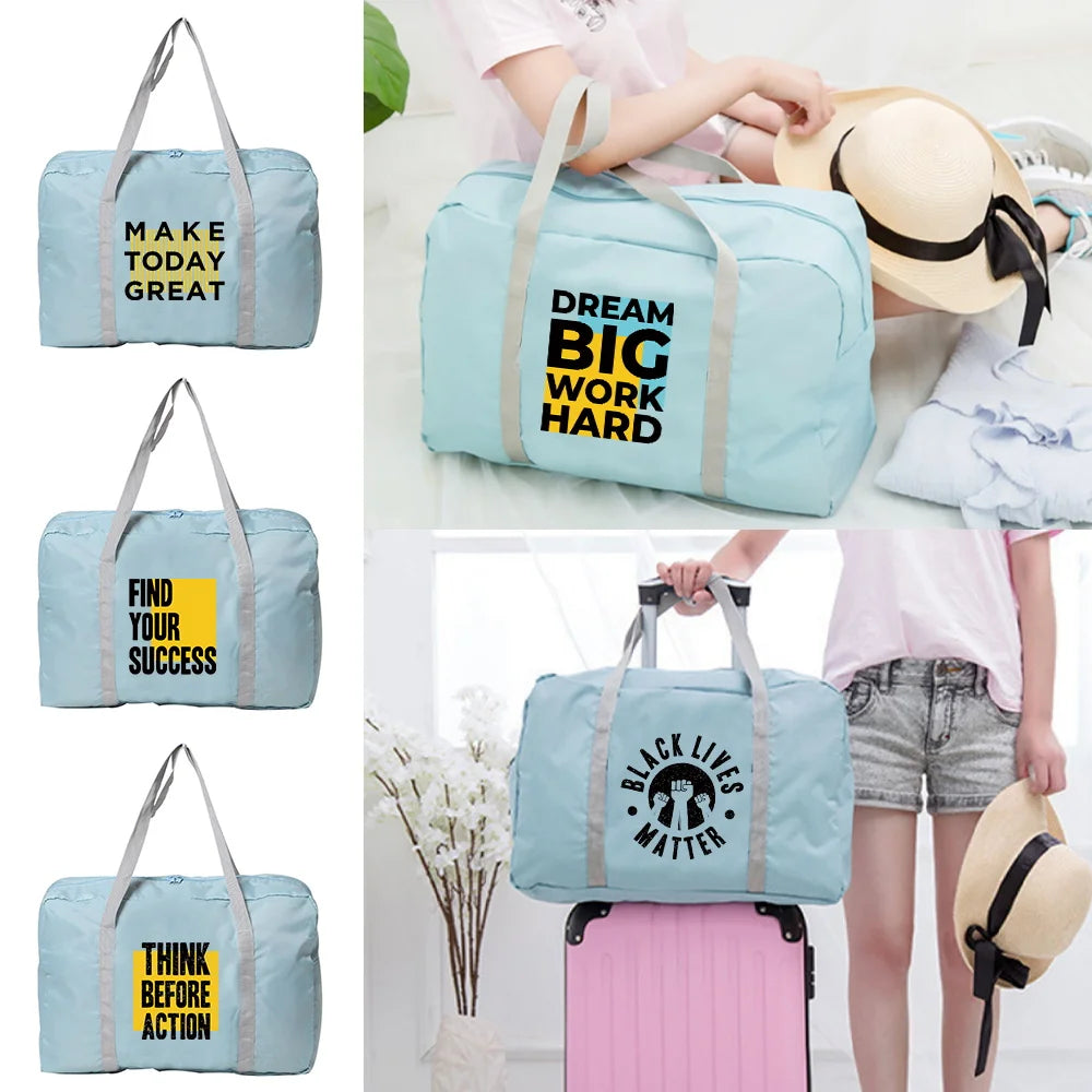 Large Capacity Travel Bag Word Printing Organizer Clothes Storage