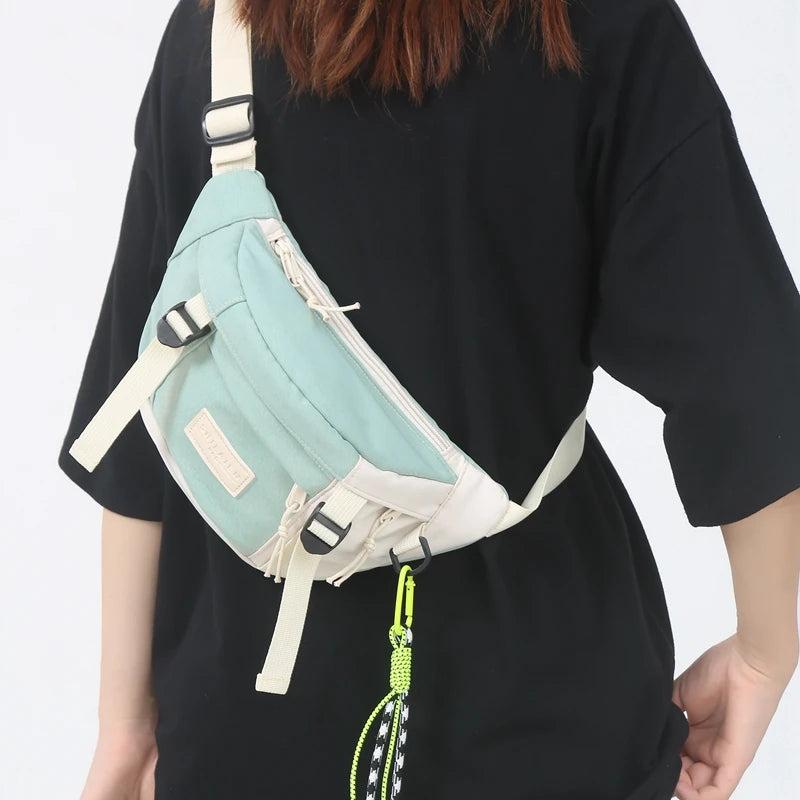 This multifunctional waist bag is made of durable nylon and features a large capacity design. It can be used as a fanny pack, crossbody chest bag, or contrast belt bag.