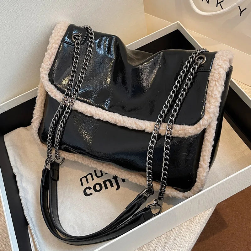 Stay stylish in the latest autumn and winter fashion with this spacious shoulder bag made of high-quality PU leather.