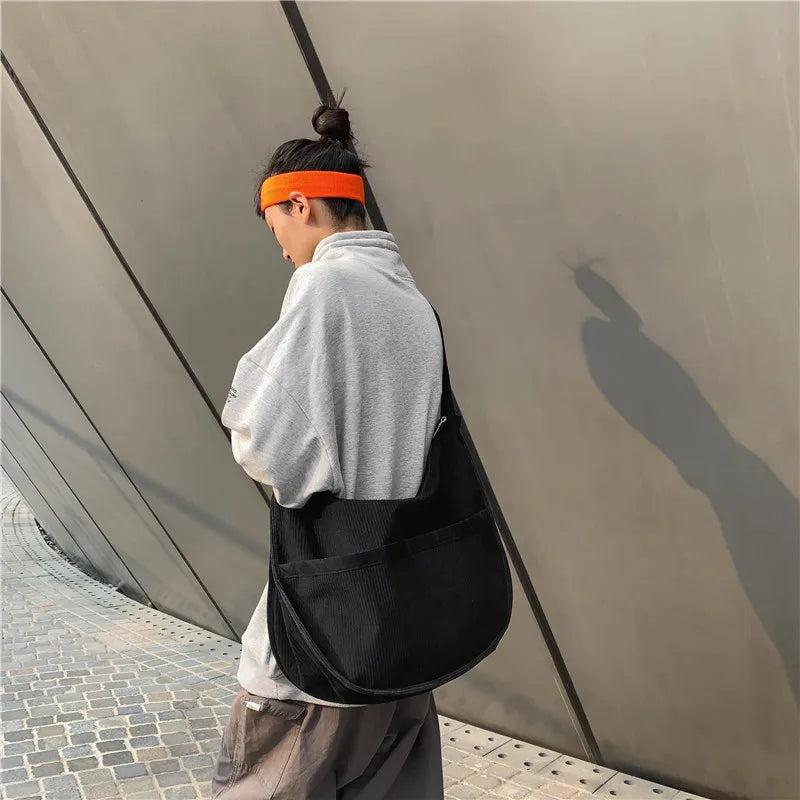 This casual corduroy shoulder bag is perfect for shopping and travel. It features a large capacity to hold all your essentials.