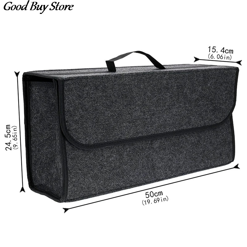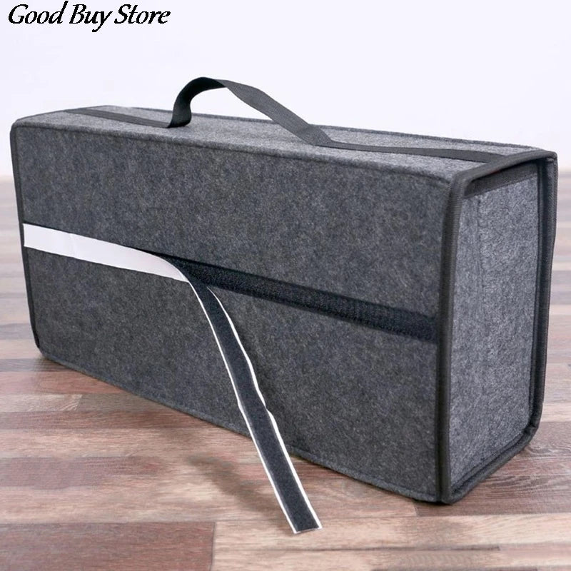Keep your car organized with this large capacity trunk storage box. It folds for easy storage and features a carpeted surface to protect your cargo. Ideal for storing emergency tools and travel essentials.