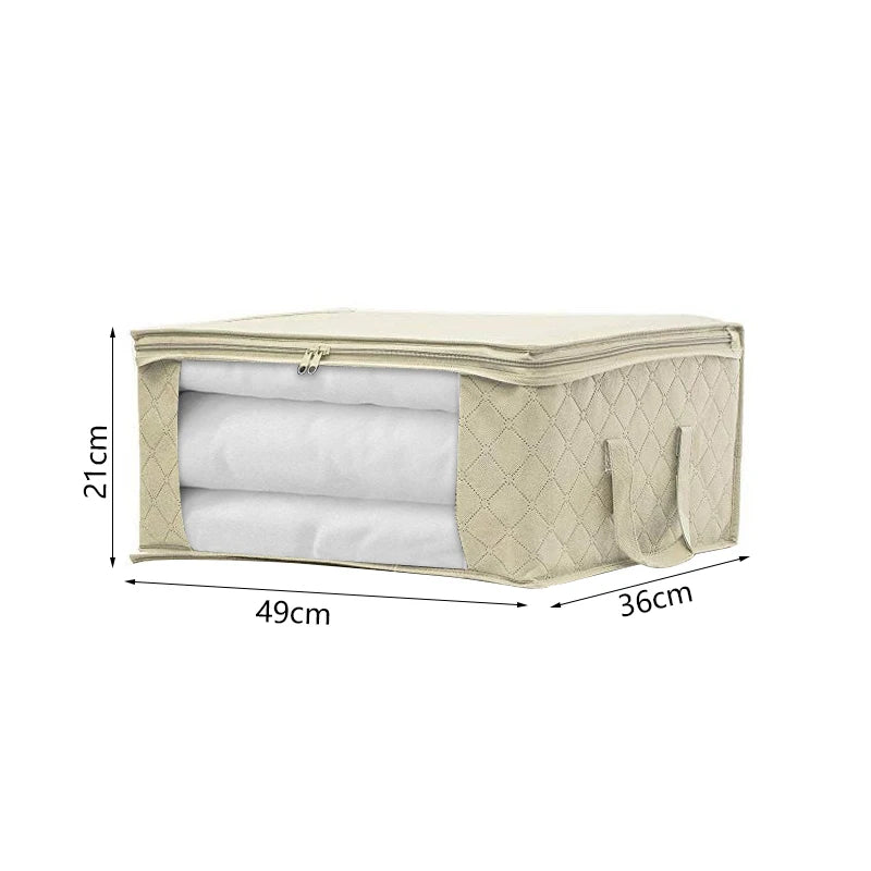 Organize your bedroom or wardrobe with this large storage box featuring a zipper cover and window. Made of fabric, it is perfect for storing toys, clothes, and other objects.