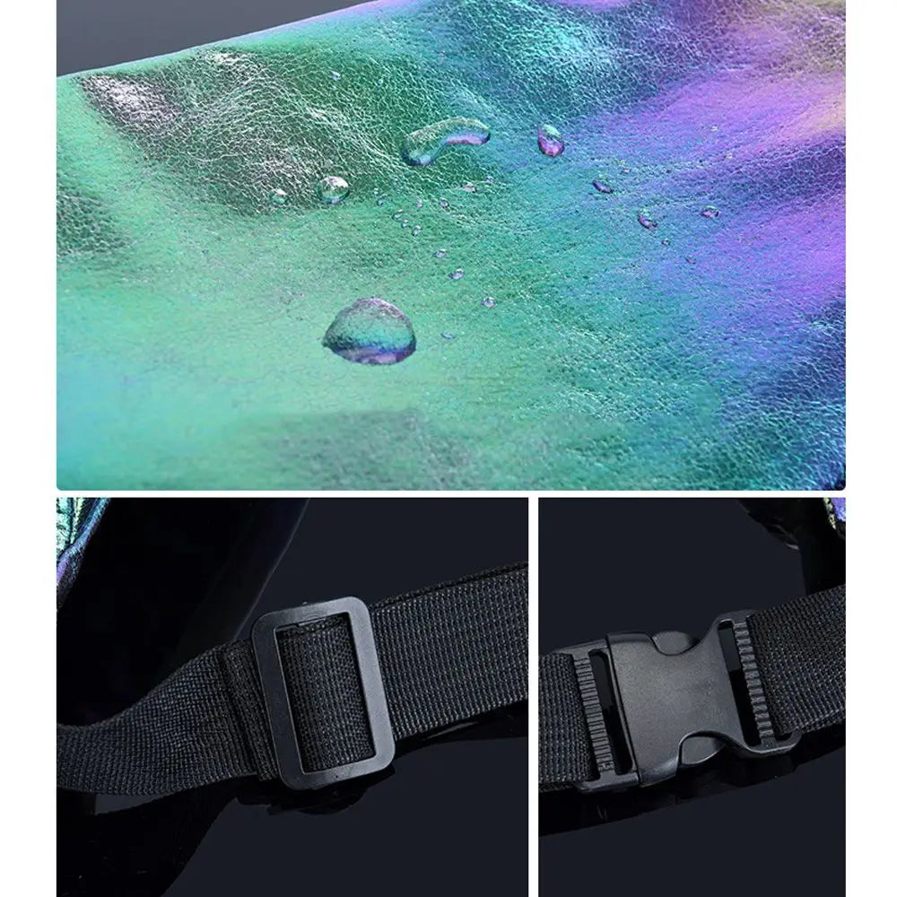 Stay trendy and organized on the go with this multifunctional laser PU waterproof waist bag. It's perfect for storing your essentials while exploring or traveling.