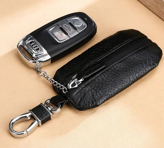 Leather Car Key Purse Waterproof Zipper Universal Key Wallet