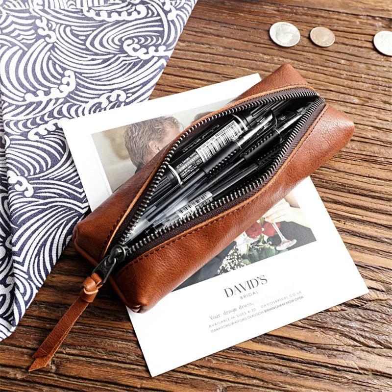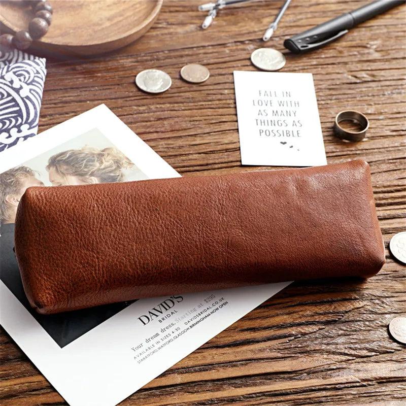 Protect your pens in style with this leather cowhide pencil bag. Ideal for office, school, and students supplies.