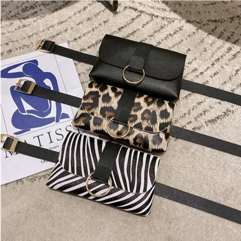 Leather Fanny Pack Ladies Belt Bag Leopard Stripe Waist Bag