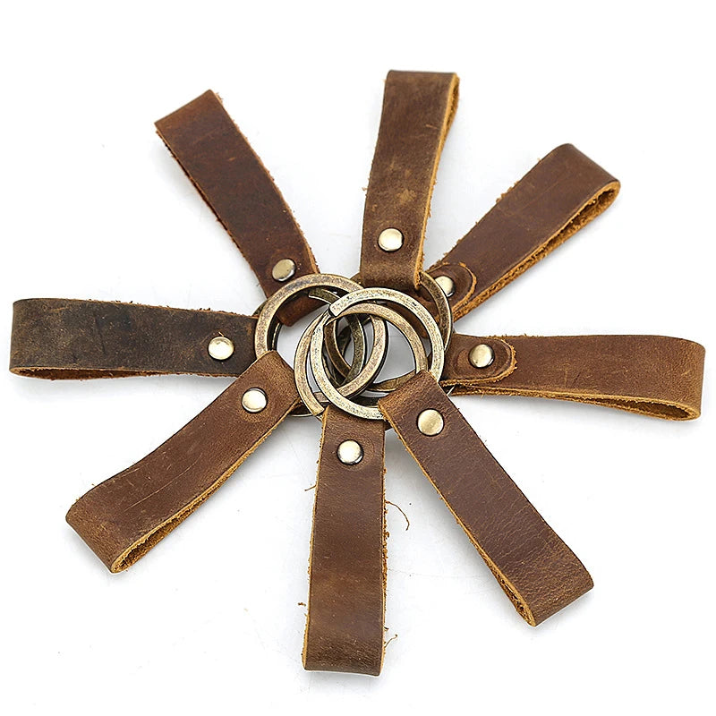 This leather key chain is made from real cowhide crazy horse leather, perfect for holding your car keys or attaching to your purse. It is durable and stylish, adding a touch of sophistication to your everyday carry.