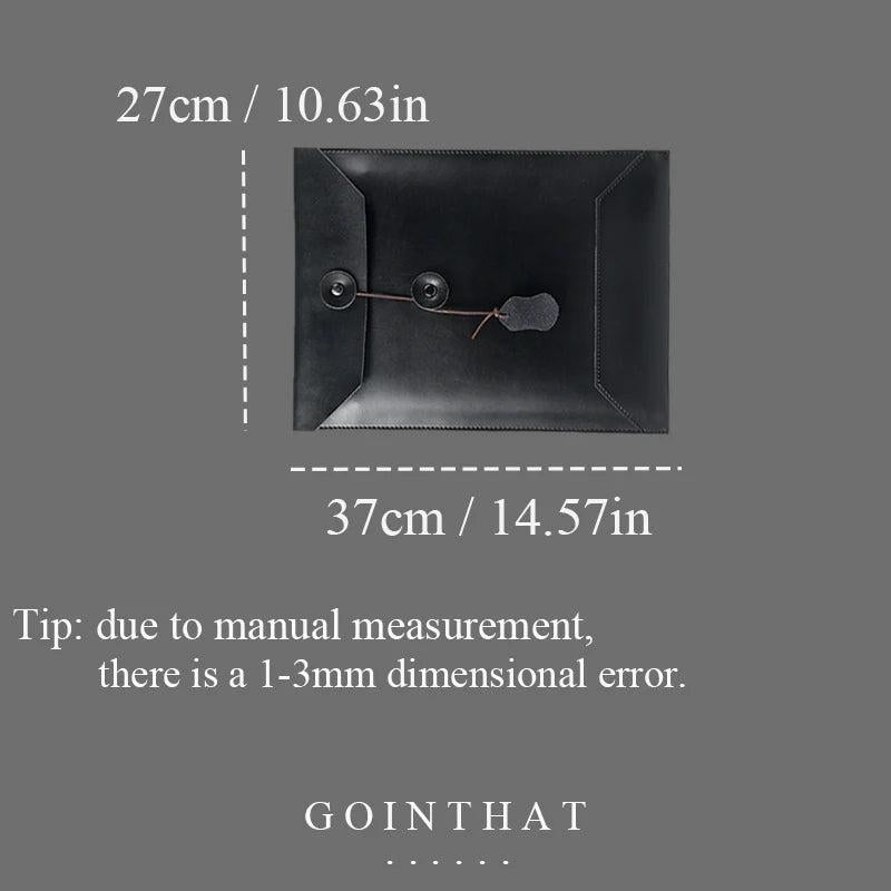 This stylish leather laptop sleeve bag is perfect for carrying your 13-inch notebook with a professional touch. It can also be used as a business briefcase, envelope messenger, A4 file folder, pouch, or clutch.