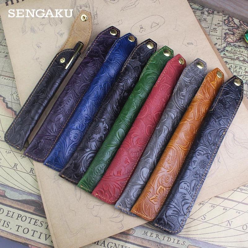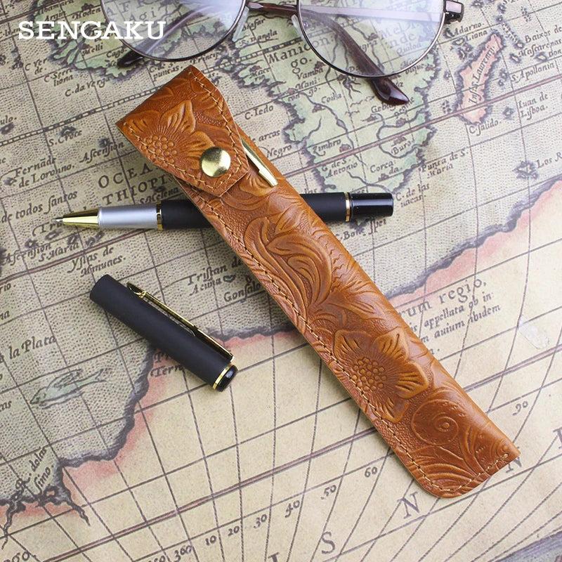 Leather Pen Case Cover Cowhide Pencil Pocket Portable Storage Pen Pouch Pencil B