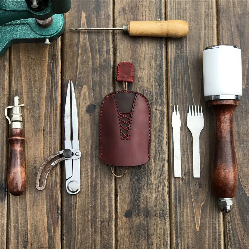 Leather sewing key chain pouch car key case