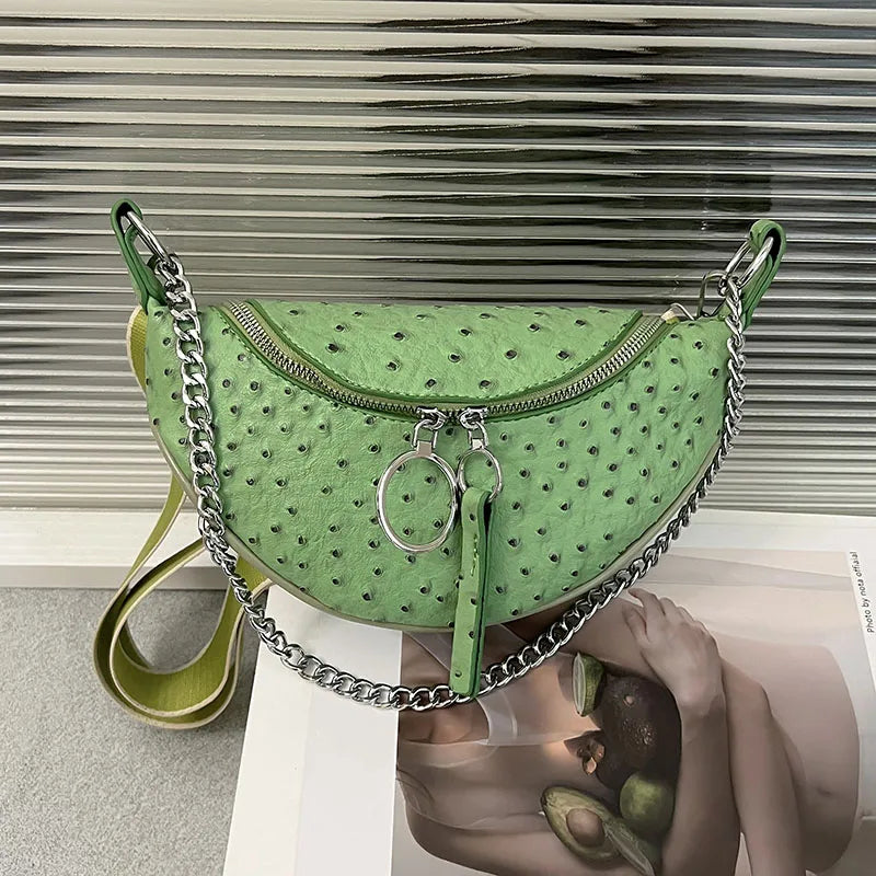 Description:Stay stylish and hands-free with this chain waist bag made of high-quality leather. Perfect for holding your phone and essentials while on the go.Features: Stylish chain waist bag for summer Made of high-quality leather Convenient saddle fanny pack design Can be worn as a crossbody chest bag Perfect for carrying...