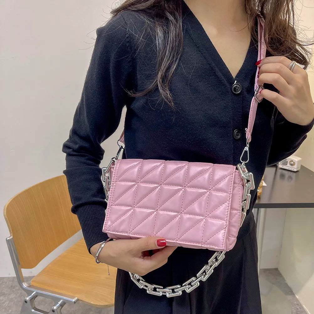 Description:Stay fashionable with this stylish PU leather armpit bag featuring a thick chain strap.Features: Fashionable checker design Made of high-quality PU leather Thick chain shoulder strap for comfort Ideal for carrying small essentials Perfect for leisure activities This product may be available in additional colours and sizes. Please contact us...
