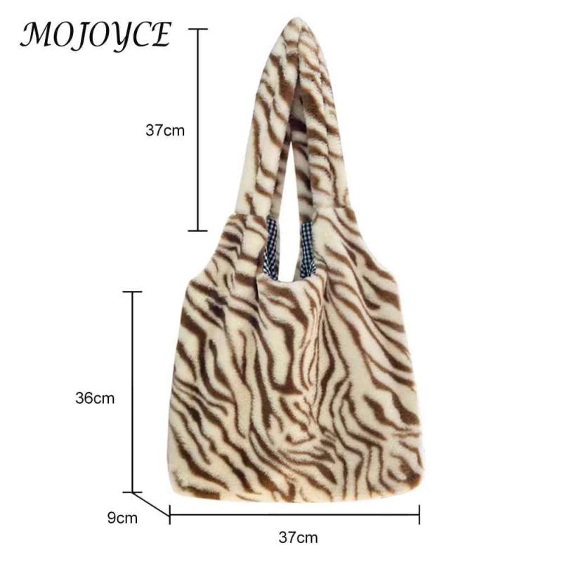 Stay stylish with this animal print underarm bag featuring a soft and fluffy design. Perfect for autumn and winter shopping.