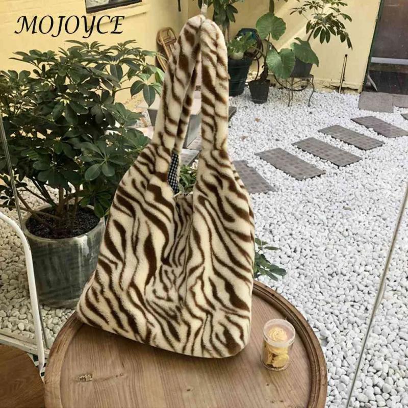 Leopard Cow Pattern Retro Handheld Shopping Bag Soft Fluffy Large Capacity