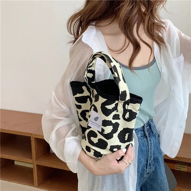 Leopard Print Canvas Tote Bag Women's Casual Shoulder Bag