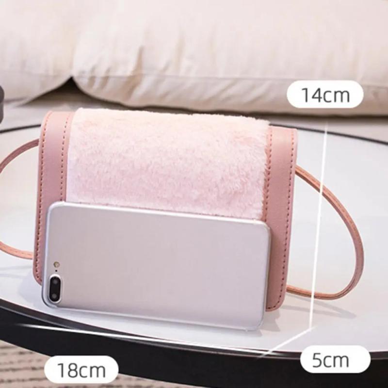 Leopard Print Rabbit Fur Phone Pouch Crossbody Bag