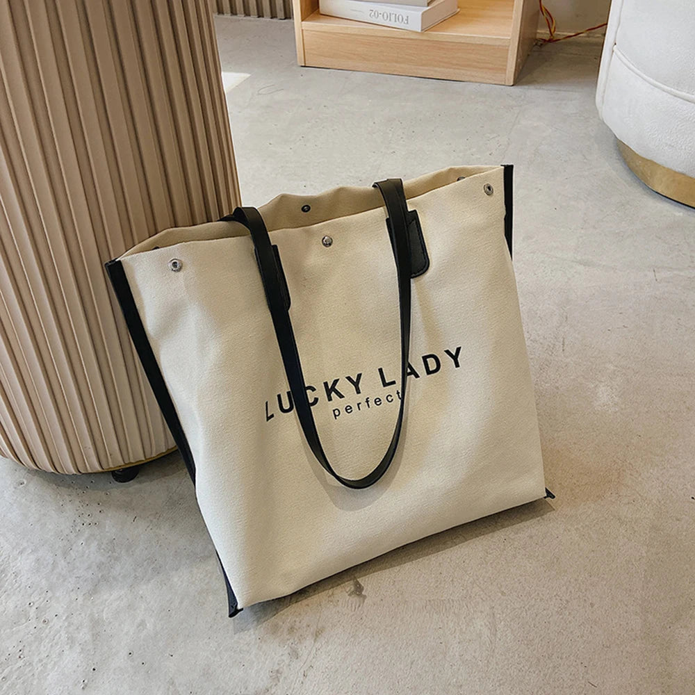 Letter Graphic Shoulder Tote Bag Female Canvas Shopping Bag