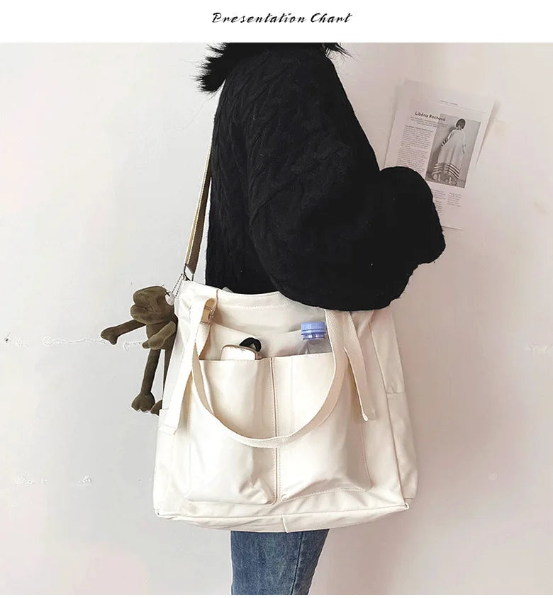 Literary Spring Messenger Bag for Women, Solid Shoulder Bag, Large Capacity