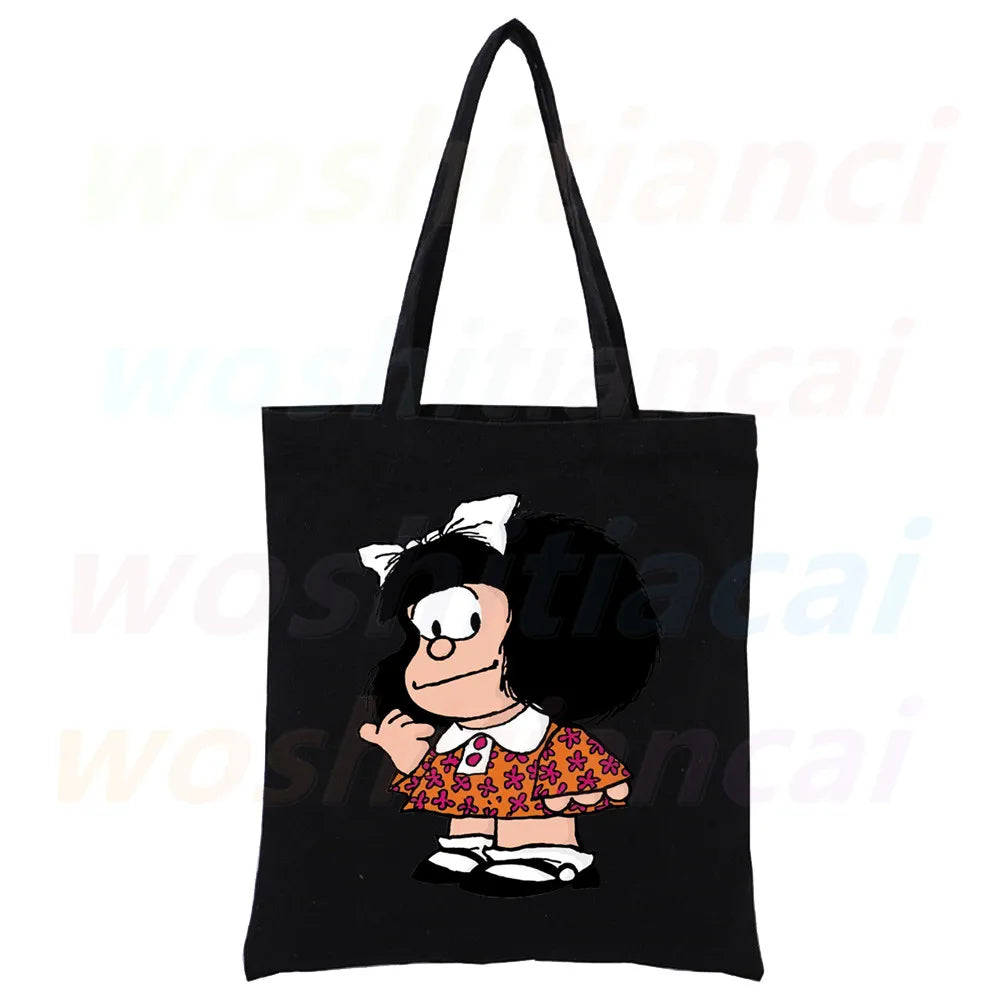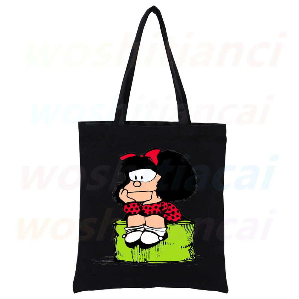 Mafalda 90s Cartoon Tote Bag Canvas Eco Shopper Foldable Harajuku Travel