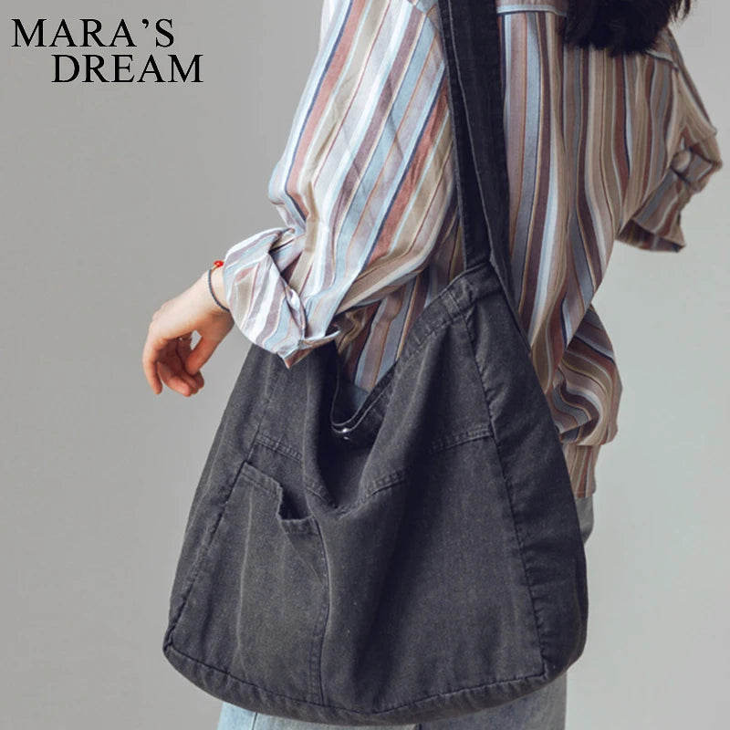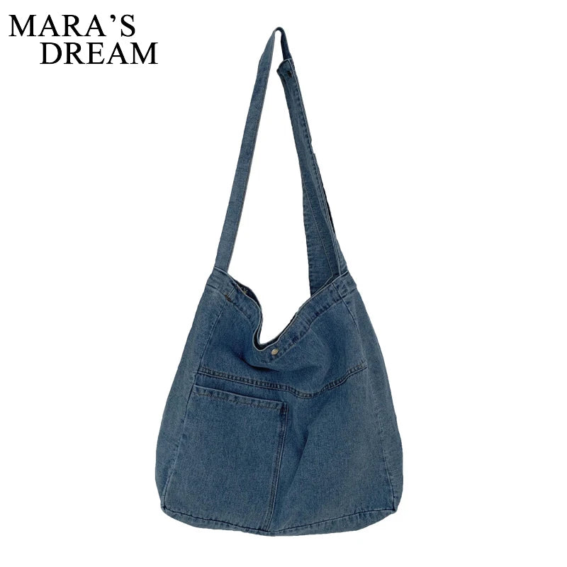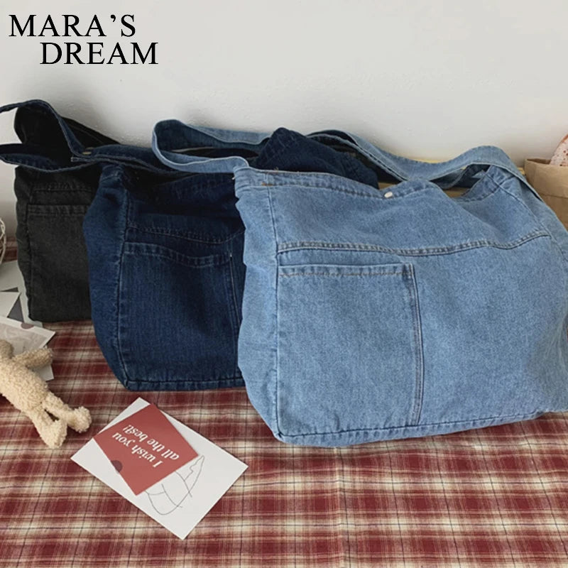 This denim messenger bag features a Japan style design, perfect for school or casual outings. It is large enough to attend classes comfortably.