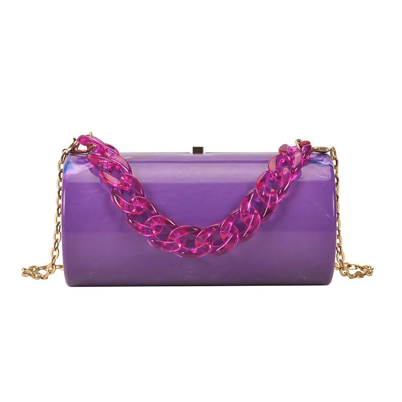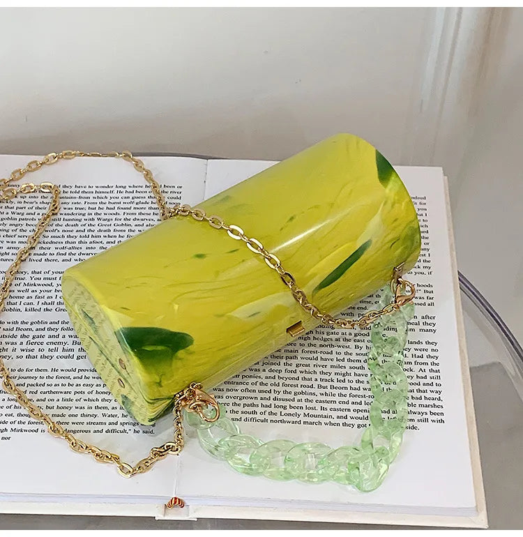 This marbling acrylic box bag is perfect for summer evenings. It features a chain strap, making it ideal for a small shoulder bag or makeup bag.