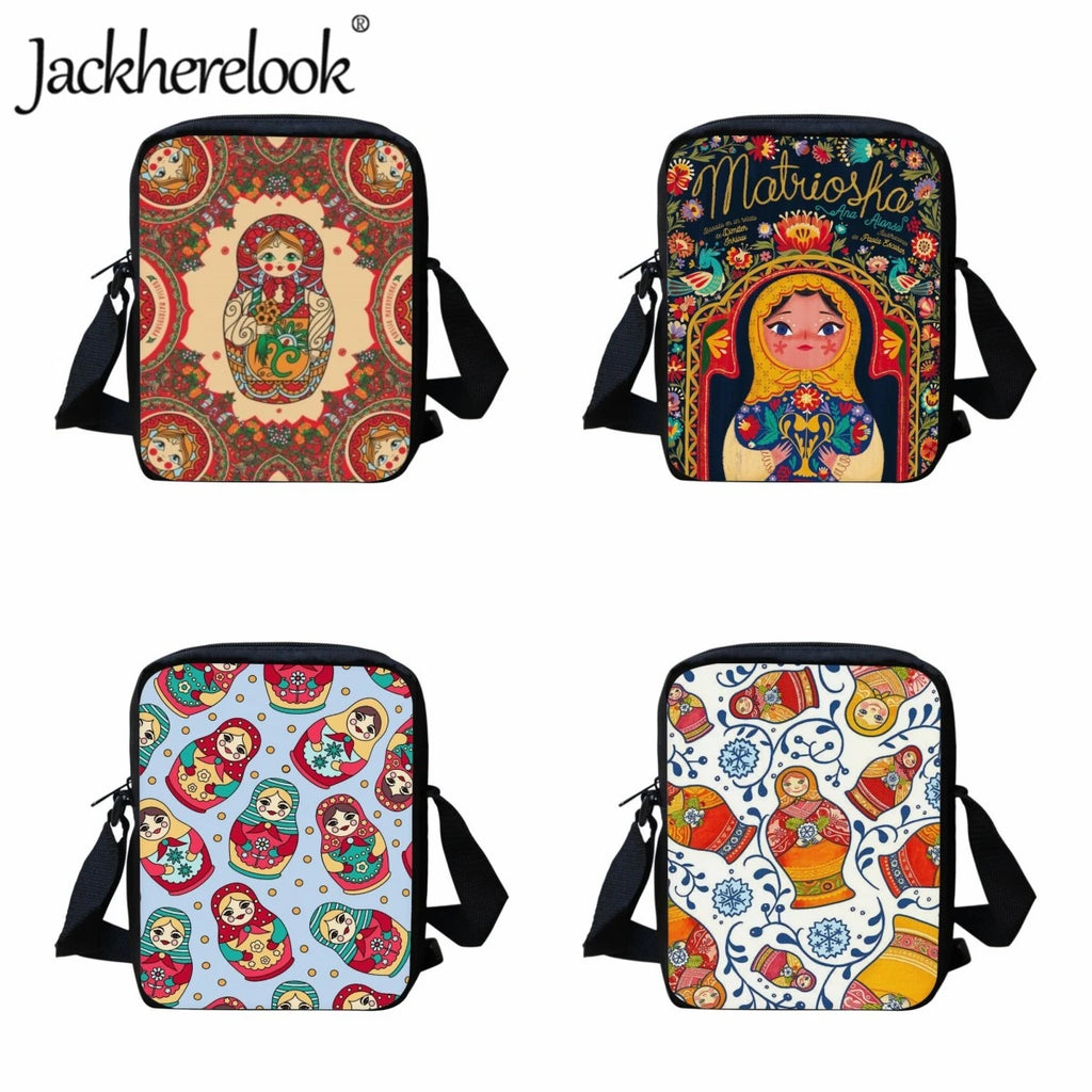 This Jackherelook Matryoshka Doll School Bag is perfect for kids as a casual daily travel bag. Ideal for boys and girls, it features a crossbody design that adds convenience and style to their outfit.