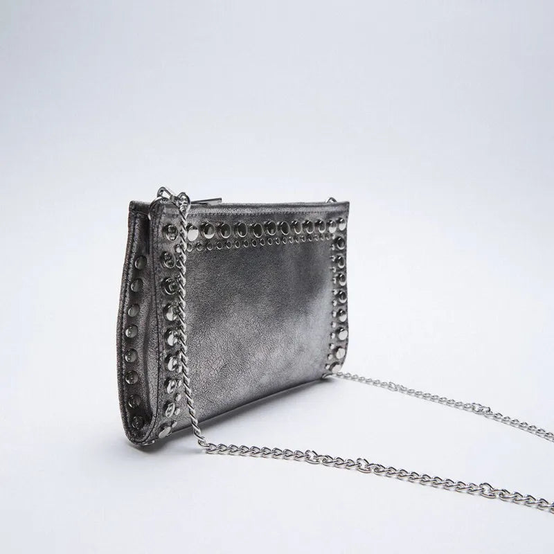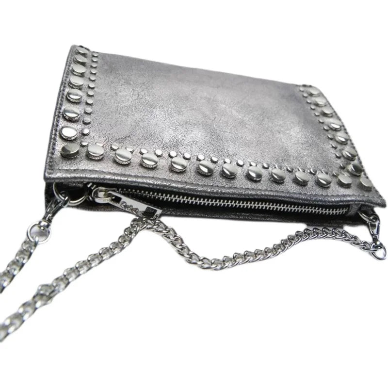 Matte Leather Chain Shoulder Bag Rivet Messenger Clutch