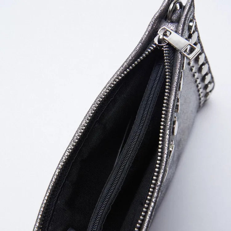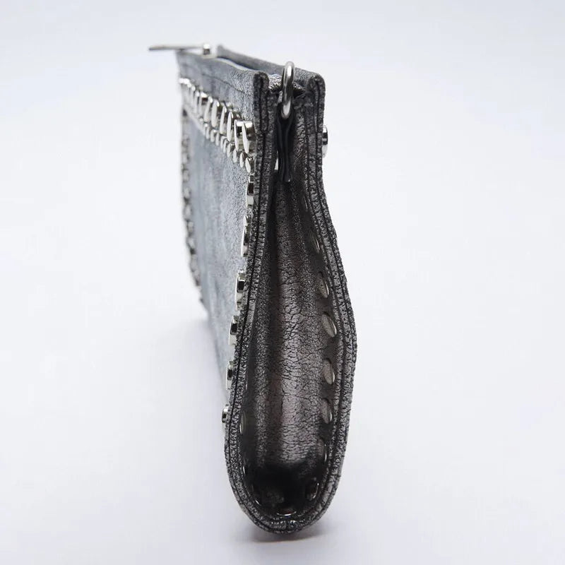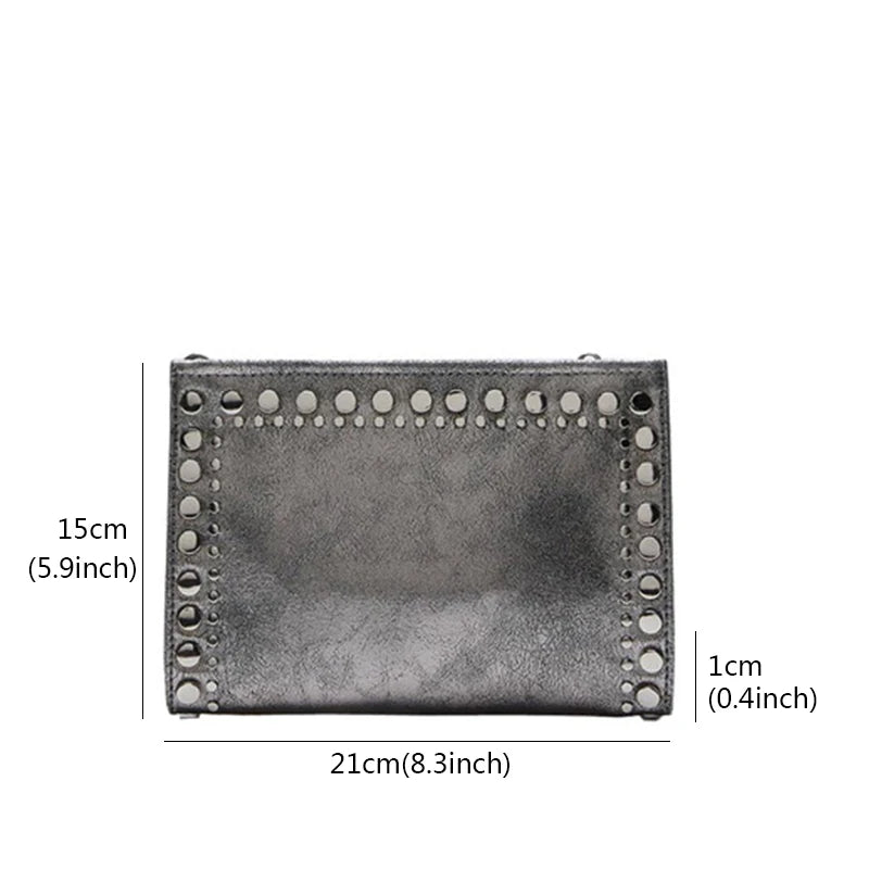 Elevate your look with this chic matte leather messenger bag featuring a stylish rivet design. Perfect for parties and special occasions.