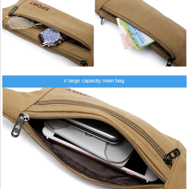 This men's waist pack is designed for convenience with a small volume and large capacity, featuring a headphone jack for easy access to music.
