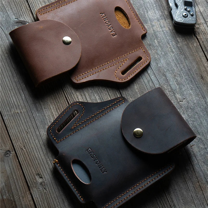 Stay organized on the go with this ultra-thin leather belt featuring pockets for your phone. Perfect for sports and running.