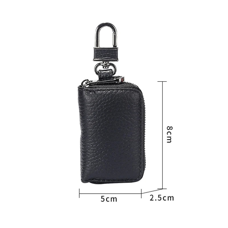 Keep your car keys organized and secure with this mini leather key holder featuring a zipper closure.