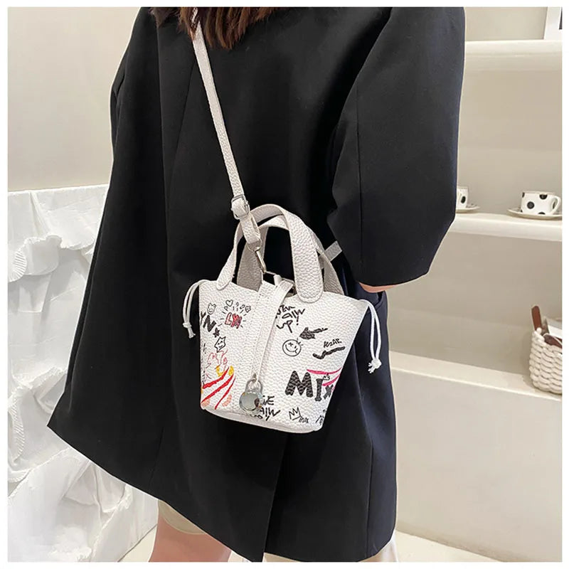 Mini Portable Bucket Bag Ladies Summer Graffiti Shoulder Bag
