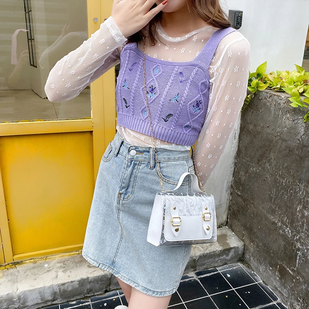 Mini Transparent Square Bag College Style Schoolbag Contrast Female